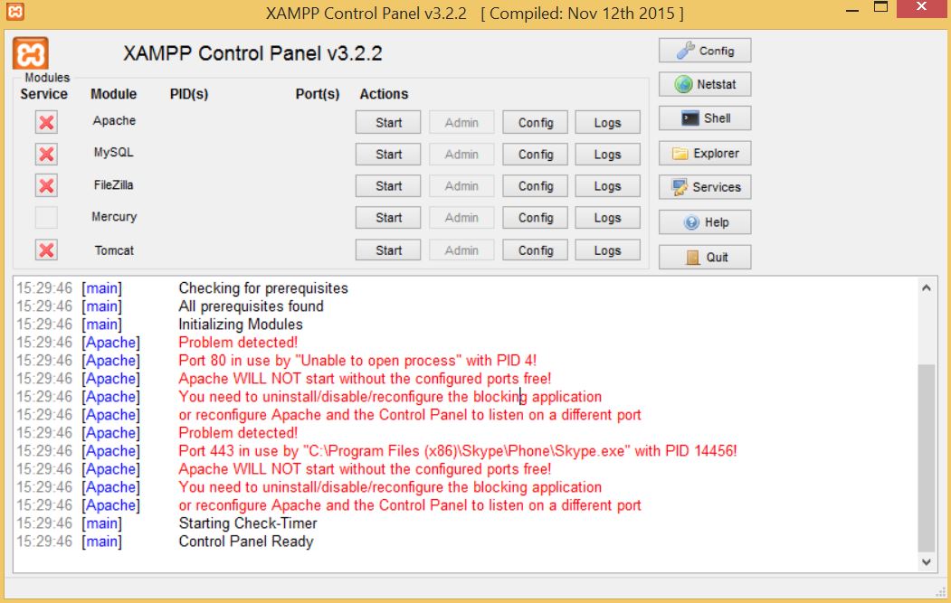 Take a look to all your used ports with netstat (integrated to xampp control panel). Then you can see all used ports and here we see that the 80port is already used by system. This is the port number used by xammp. 26/04/2020 · cara mengganti port apache di xampp. If the xampp server is running for the moment, stop xampp server.