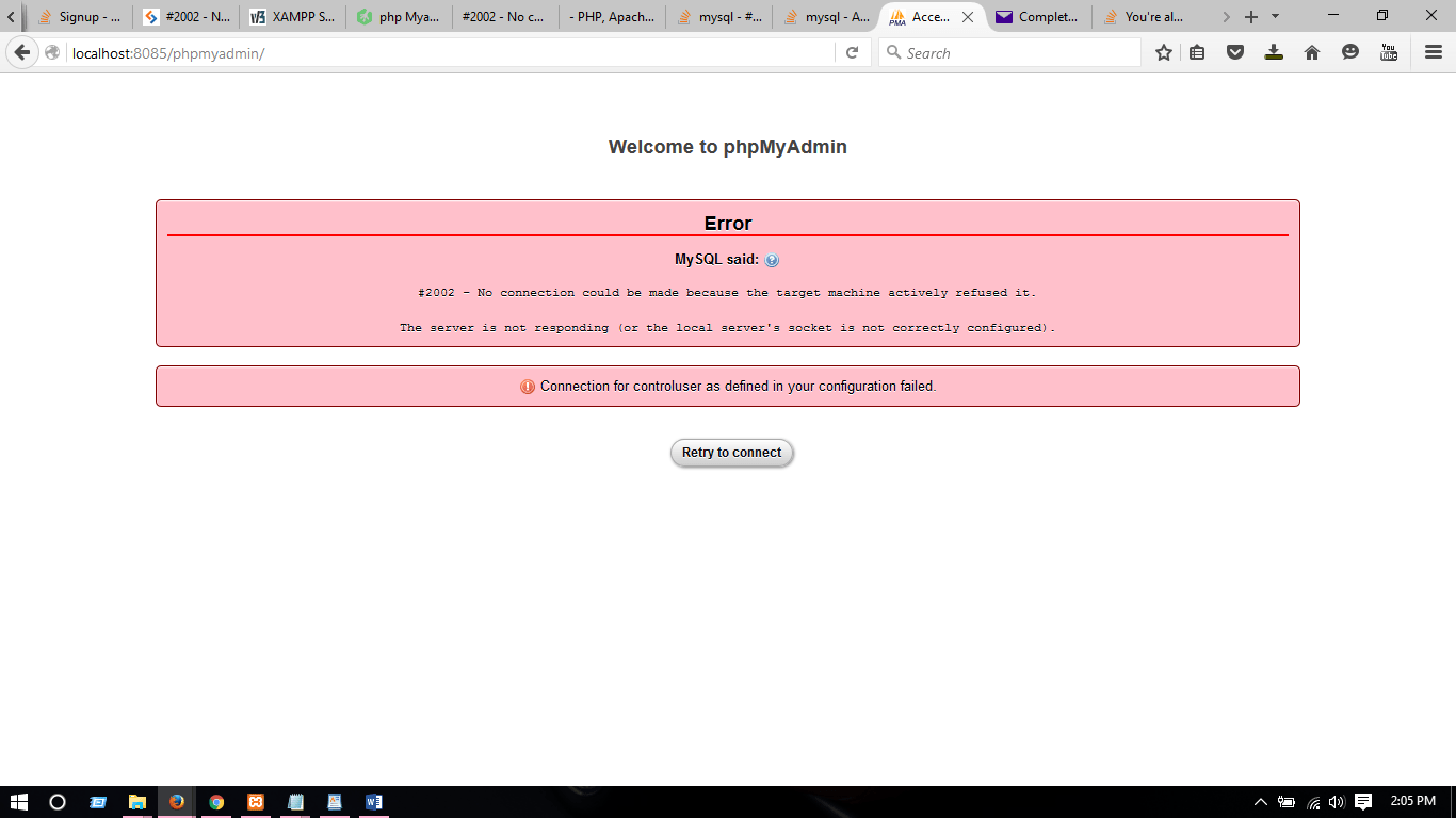 Saya tidak bisa memasukkan phpmyadmin di localhost: Due to that previous default loaclhost port number is not valid now. Secara default, mysql server menggunakan port 3306. You can configure xampp to open apache and phpmyadmin on port 8080 by default from xampp from the xampp userinterface itself as described in the . So i configure the xampp mysql port to 3307 (default is 3306) inside the my.ini file.